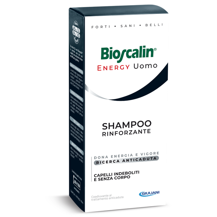 Bioscalin Energy Shampoo contiene inoltre AJB-Complex che associa alla Biotina, vitamina importante per i capelli, gli estratti selezionati di Ajuga reptans (pianta europea) che studi in vitro hanno dimostrato aiutare a inibire la 5 alfa reduttasi, una delle principali cause della caduta dei capelli nell'uomo. Specifici ingredienti funzionali restituiscono corpo e vigore alla chioma mentre pregiati componenti, tra cui derivati vegetali e pro-Vitamina B5, proteggono cute e capelli conferendo piacevole morbidezza.