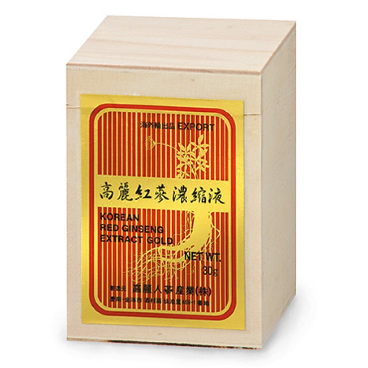 Ginseng Coreano Estratto molle Rosso Qualità Oro puro 100%, preparato utilizzando esclusivamente radici intere di 6 anni con il metodo che una volta veniva utilizzato dal Monopolio di Stato Coreano e che prevede che le radici vengano cotte in un tunnel di vapore assumendo così un colore rossastro prima della preparazione dell'estratto molle. Utile per un'effetto tonico-adattogeno.