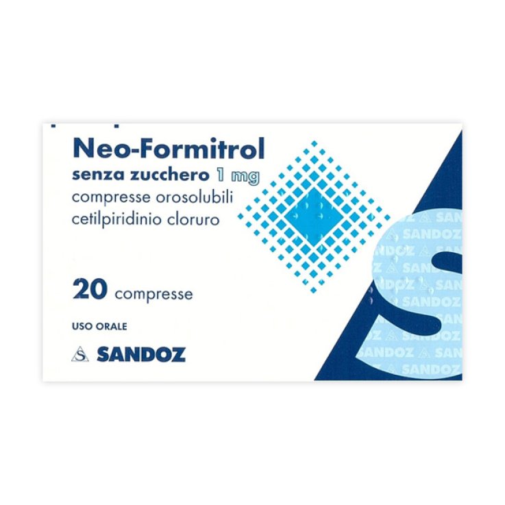 Una compressa contiene : NEO FORMITROL PRINCIPIO ATTIVO: cetilpiridinio cloruro mg 1. Eccipienti: saccarosio NEO FORMITROL Senza zucchero PRINCIPIO ATTIVO: cetilpiridinio cloruro mg 1. Per l’elenco completo degli eccipienti, vedere paragrafo 6.1